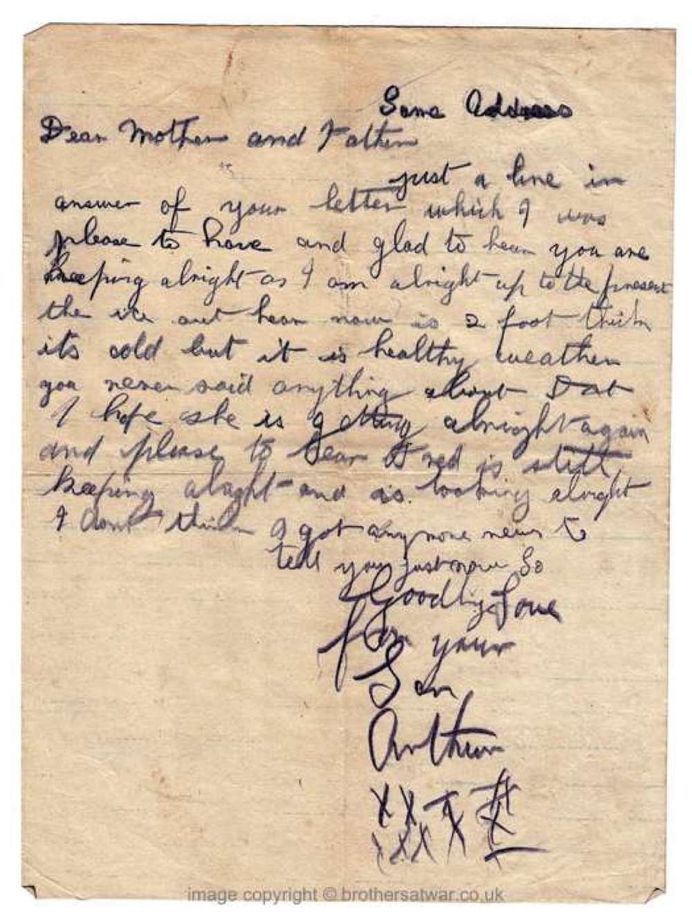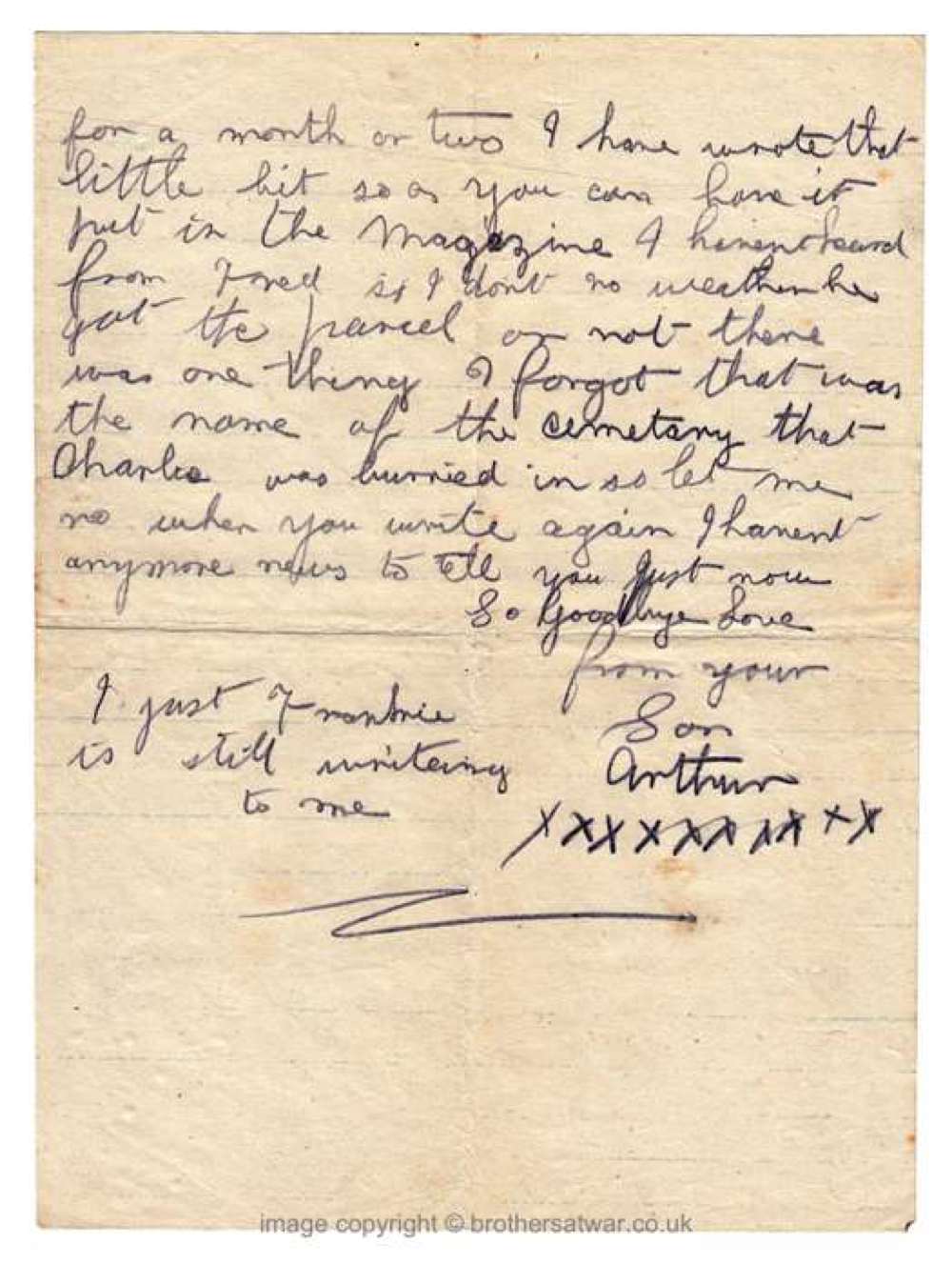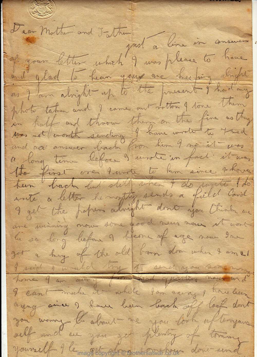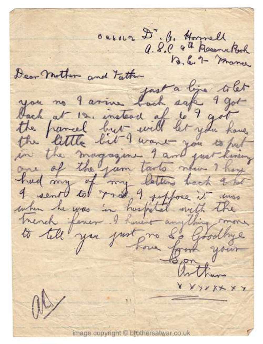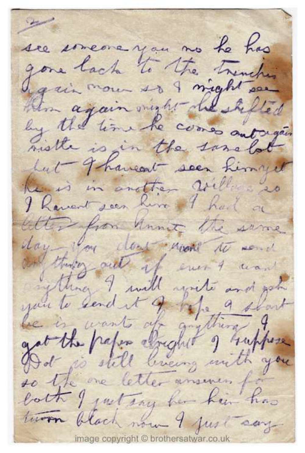 I have had [one of] my letters back what I sent to Fred. I suppose it was when he was in hospital with the trench fever.