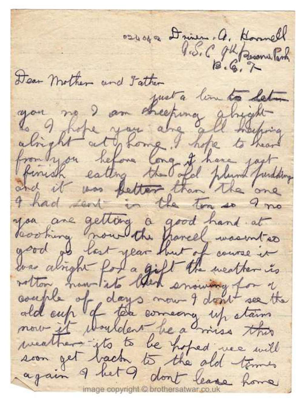 I have just finished eating the old plum pudding and it was better than the one I had sent in the tin so I know you are getting a good hand at cooking now.