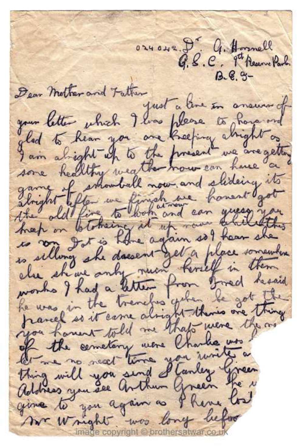 I had a letter from Fred. He said he was in the trenches when he got the parcel so it came alright.